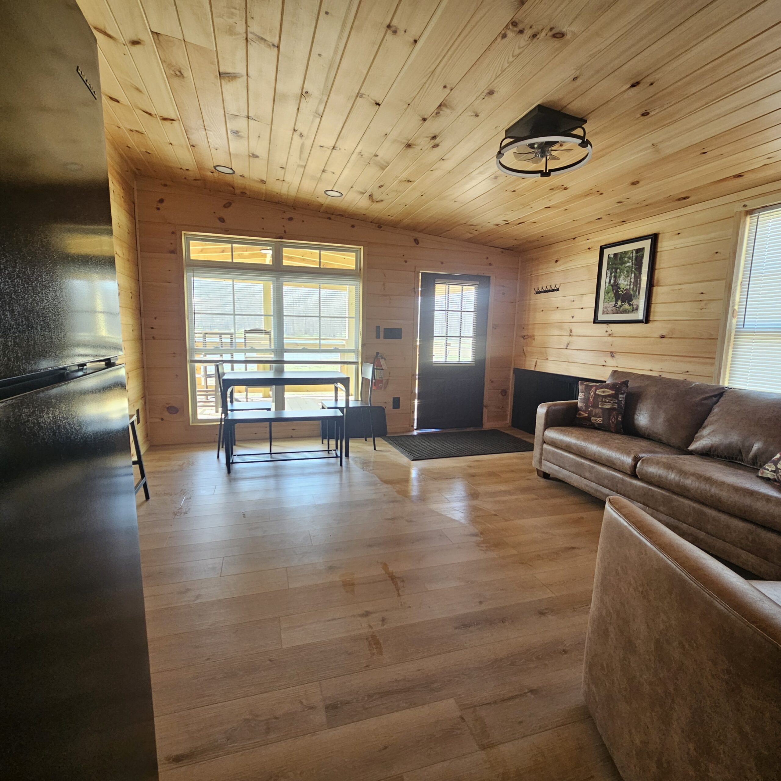 No smoking or vaping allowed inside any cabin. Smoking is permitted on the covered porch and outside areas. Maximum 6 guests total.