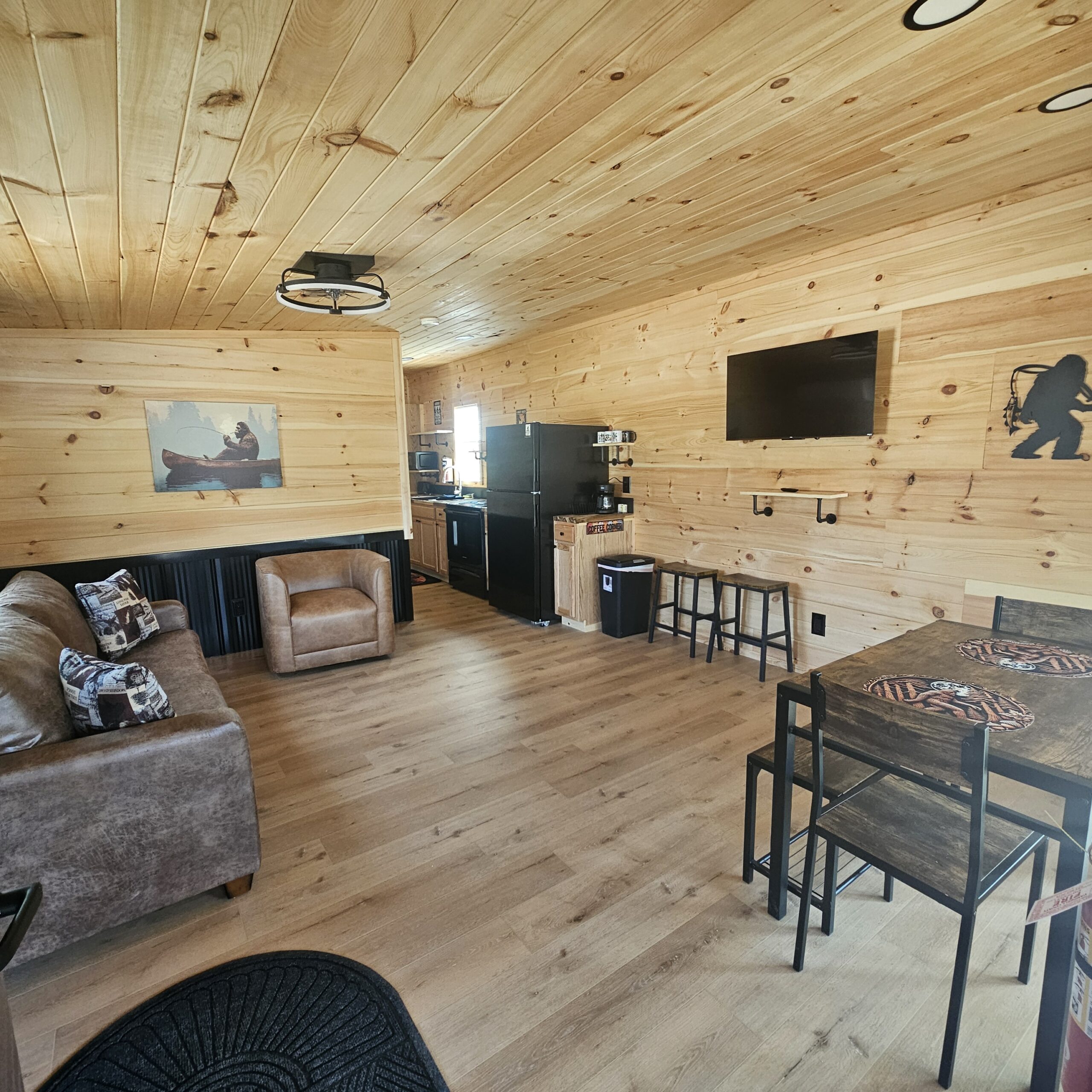 Step into a one-of-a-kind lakefront escape filled with rustic charm and Bigfoot-inspired décor—keep your eyes peeled, you never know who might be lurking nearby 👣
